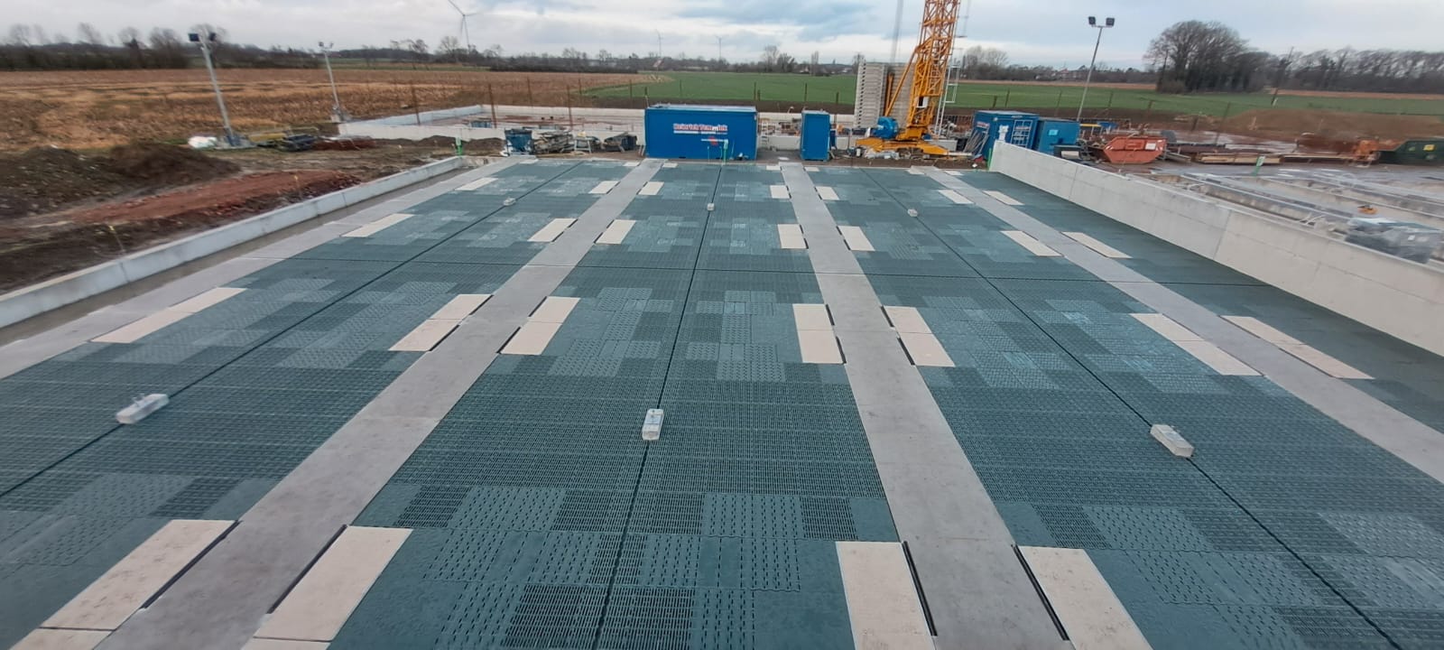 Dieser moderner Abferkelstall bietet später Platz für 144 großzügige Bewegungsbuchten (2,60 x 3,00m), die den Sauen während der Abferkelphase ein hohes Maß an Bewegungsfreiheit ermöglichen. Jede Bucht ist mit unserem bewerten Ferkelnest Easy-Fix ausgestattet, das den Ferkeln Wärme und Sicherheit bietet.